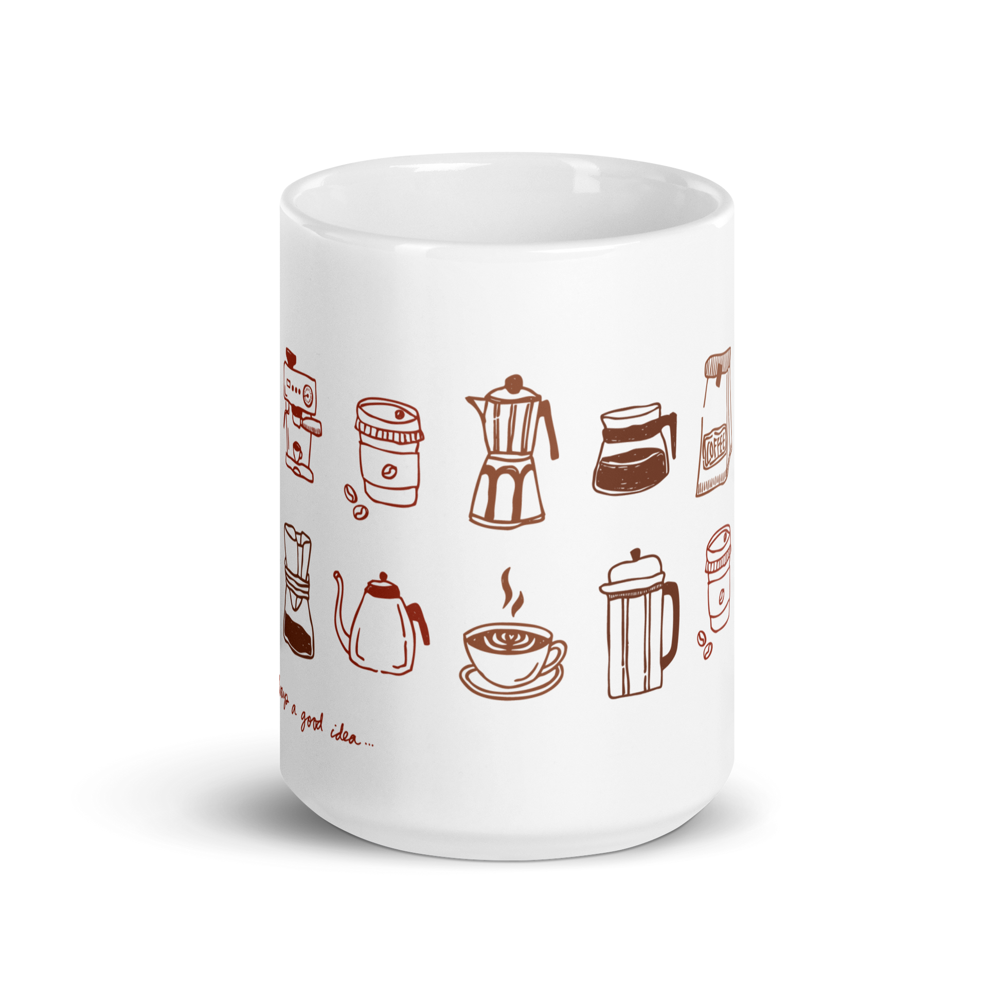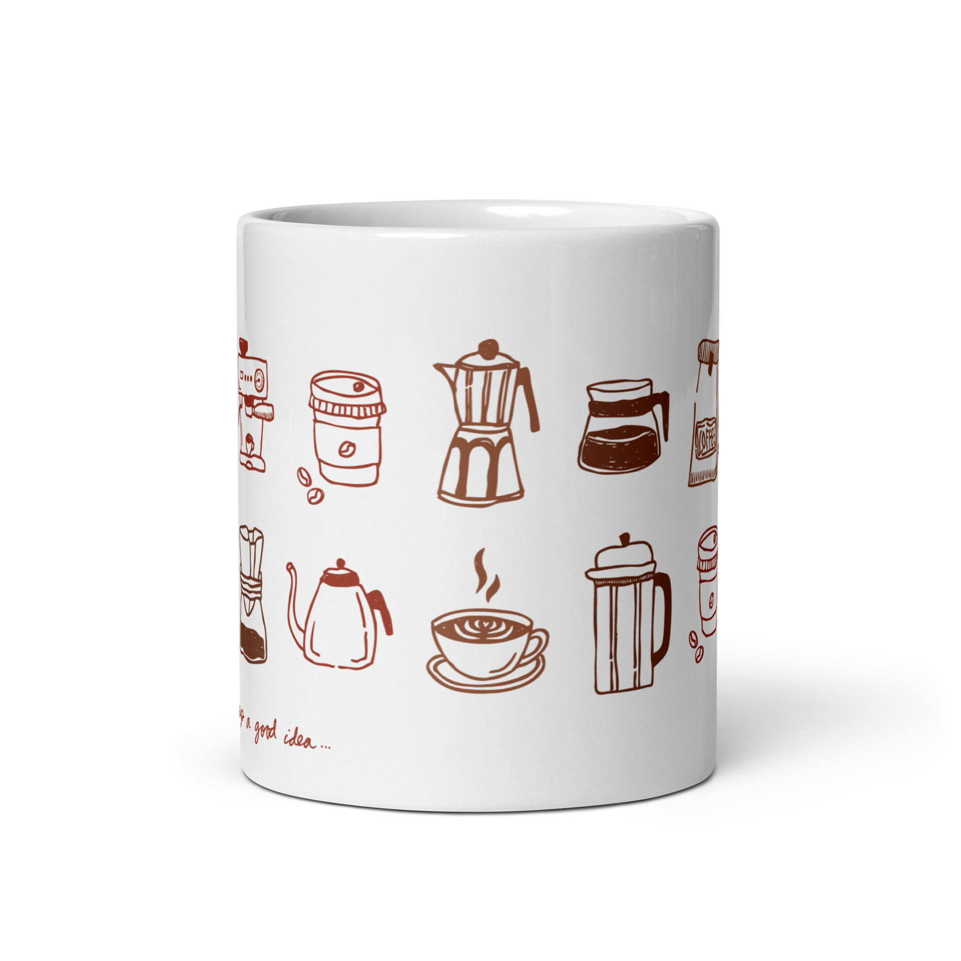 Start your day with a smile (and a little extra caffeine joy!) This mug features a lineup of hand-drawn coffee illustrations wrapped around the outside, paired with the phrase “coffee is always a good idea…” — because honestly, it is. ☕